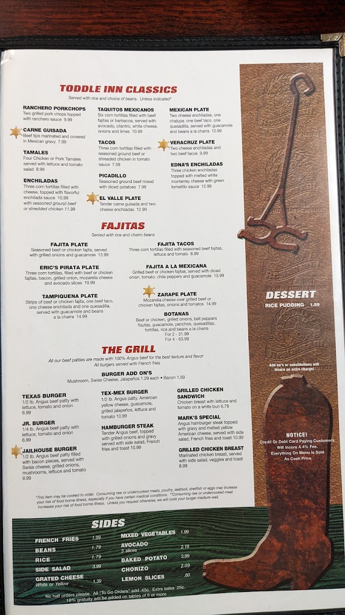 Toddle Inn Restaurant, located at 1740 Central Blvd in Brownsville, TX, is a cherished establishment renowned for its hearty breakfast offerings and comforting atmosphere. From classic pancakes to robust breakfast tacos, the menu showcases a delightful blend of traditional Mexican dishes and invigorating desserts that cater to diverse palates.