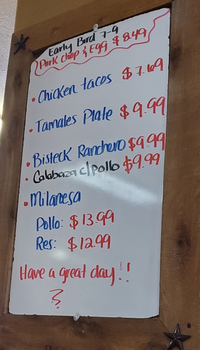 Customers rave about the quality of the food and attentive service, often highlighting the welcoming smiles from the staff. The warm, fresh corn tortillas accompanying breakfast platters steal the show, while inventive dessert options, like homemade rice pudding, evoke nostalgic flavors. Support for military veterans and local heroes reflects the restaurant's commitment to community values.